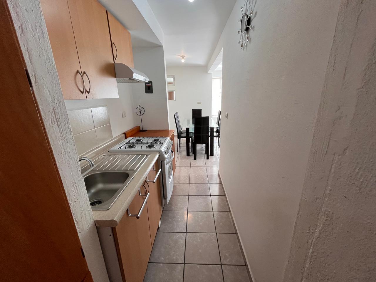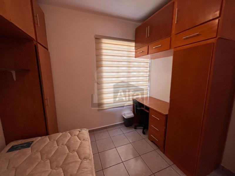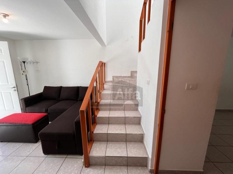 Cuenta con 3 habitaciones (1 en planta baja y 2 en planta alta con closet cada una), Cocina integral con refrigerador, sala/comedor equipados con mesa de cristal con 6 sillas y 2 sillones, 1 baño completo en planta alta y medio en planta baja también cuenta con patio de servicio y cochera con portón de una plaza.